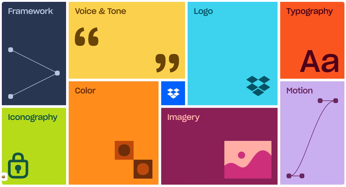 Mission, values, positioning, tone, logos, colors, fonts, patterns, photos, usage examples |