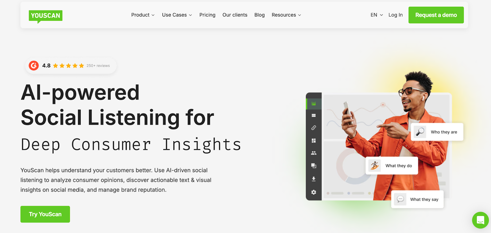 Real Use Case: For example, you work with a sneaker brand. YouScan shows that people publish photos in these sneakers in various contexts: in the mountains, on city streets, even at work meetings. You see the product being used in much wider scenarios than you might have expected. Based on this, you can redesign your marketing materials—add more diverse usage scenarios.