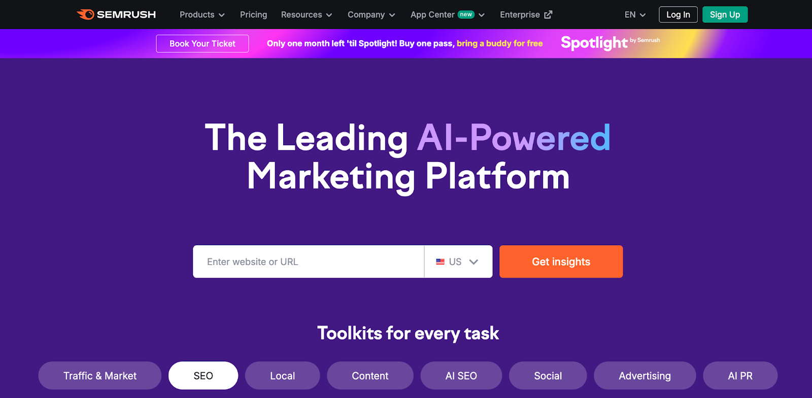 Solution: Semrush analyzes competitors' SEO strategy: which keywords they rank for, which articles bring them the most traffic, and what technical issues exist on their sites.