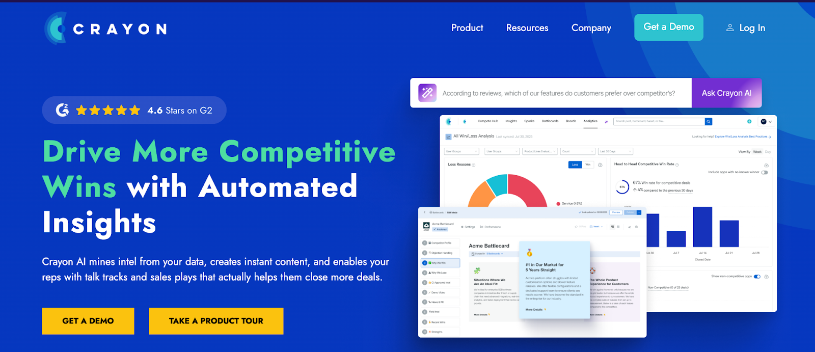 Solution: Crayon tracks all competitor changes: website updates, new job postings (a sign of expansion), pricing policy changes, and ad campaign launches.
