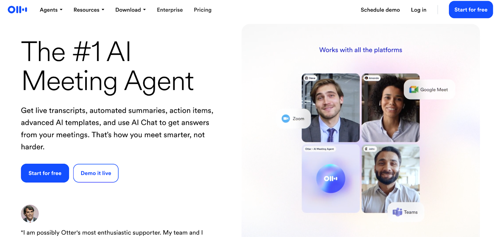 Solution: Otter.ai automatically transcribes conversations in real-time, highlights key moments, creates brief summaries.