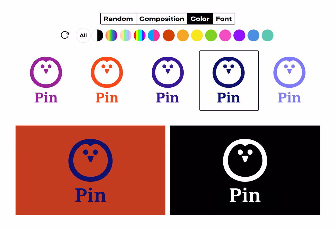 At the bottom of the page, you’ll find the settings panel where you can select your logo's color scheme, font, and style. Ironov offers four main types of logos: