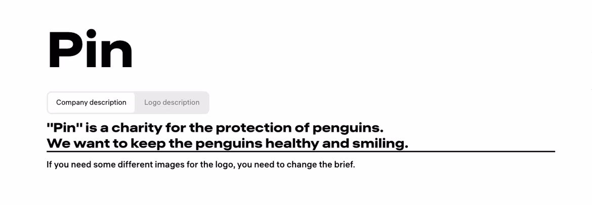 To kickstart your logo design with Ironov, you need to provide the name of your company and a brief description of what you do. If you have specific images or themes in mind, include these details in your brief. For example, if you want a logo featuring a happy penguin, describe it as “a logo that depicts a smiling penguin.”