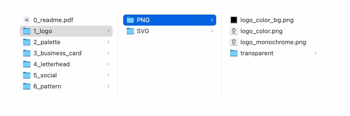 After finalizing your logo, download the complete design pack. This includes your logo, color palette, business card example, letterhead, corporate pattern, and all necessary materials for your social media profiles.