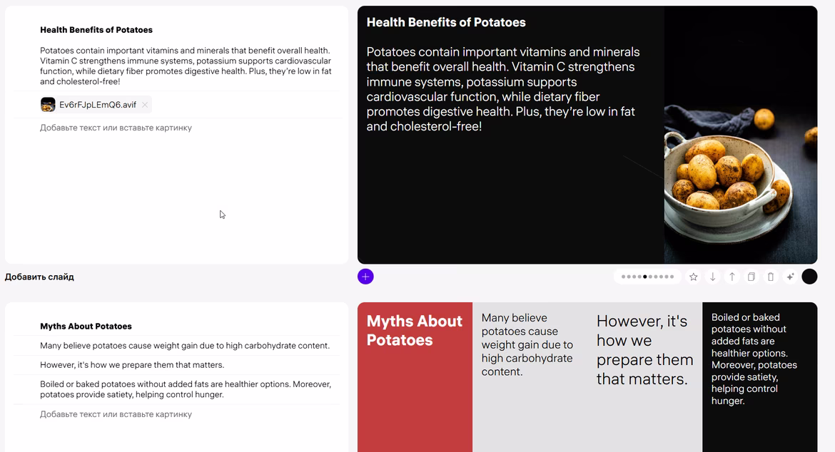 The choice of presentation tools today is enormous. Neural networks promise to do the job in a minute, traditional editors offer complete control, and new services offer unconventional formats. But behind these promises often lie limitations: unstable performance, template-based designs, and texts that require complete rework.