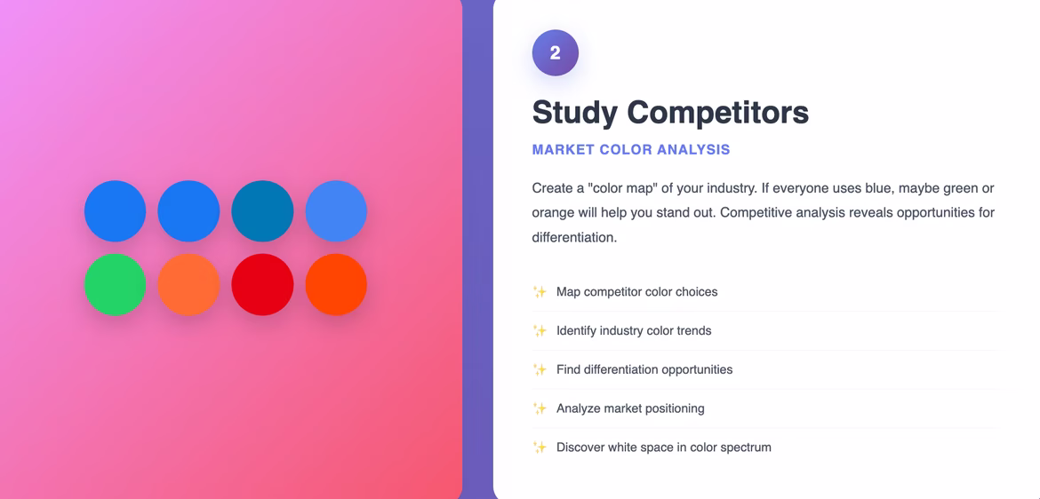 Create a “color map” of your industry. If everyone uses blue, maybe green or orange will help you stand out.