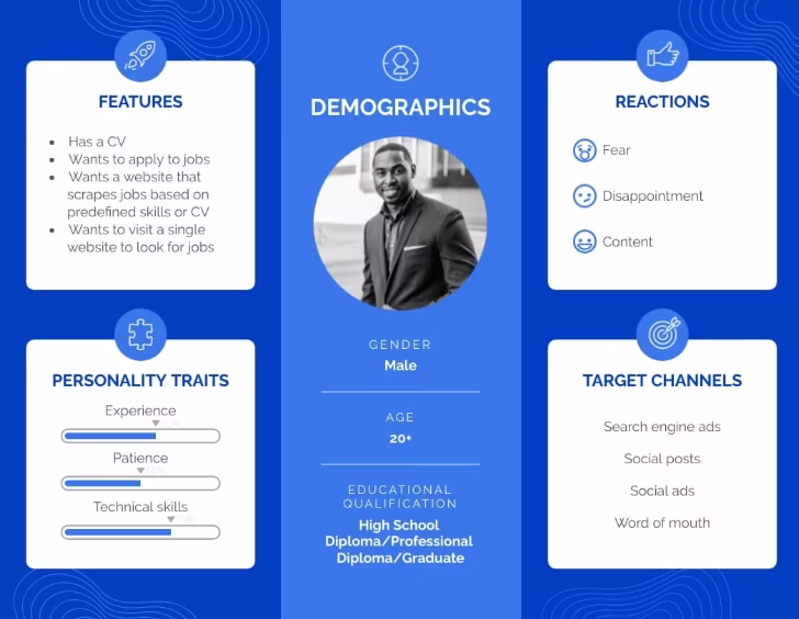 Include emotional characteristics too: What motivates this person? What do they fear? What are they striving for? Walk through their typical day — from waking up to going to bed — to spot the moments when your product might be most relevant. Identify the sources of information they trust and the people whose opinions they value.